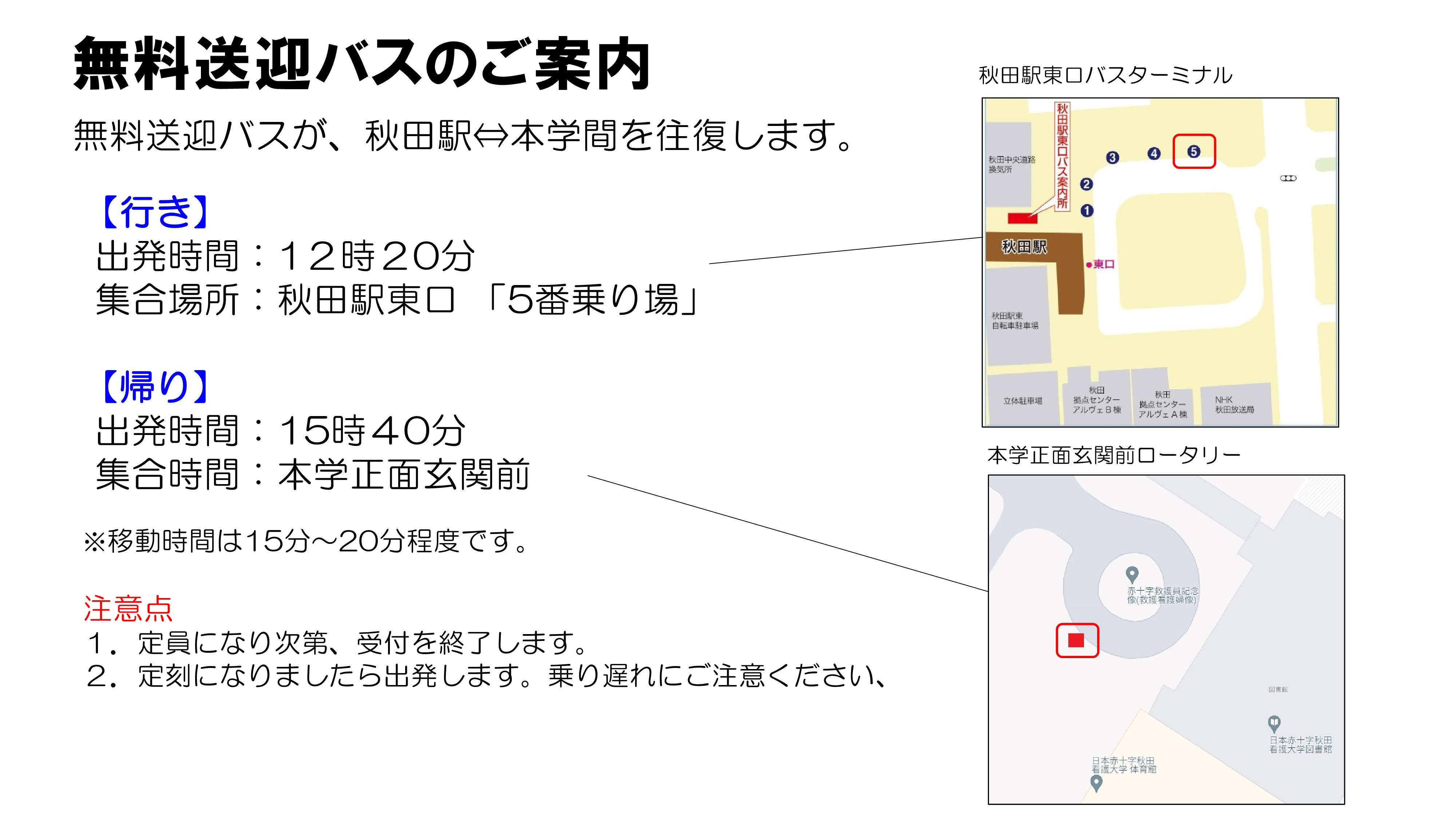 ※秋田駅発の路線バスも運行しておりますのでご利用ください。